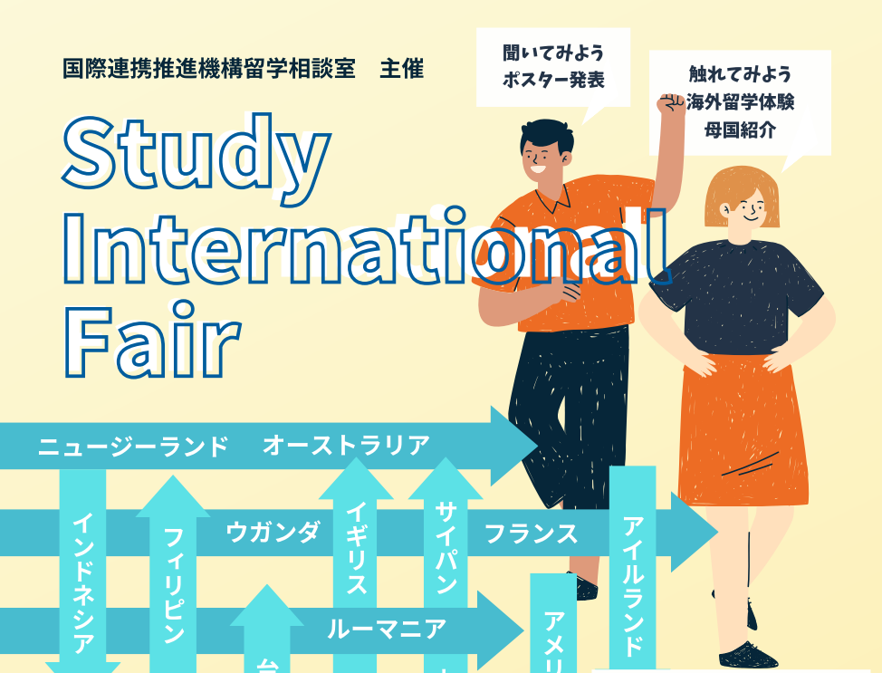 2025年5月23日(金)11:30~16:00に愛媛大学城北キャンパス共通講義棟A中庭にて、Study International Fair(国際連携推進機構留学相談室主催)が実施されます。2025StudyInternationalFair1